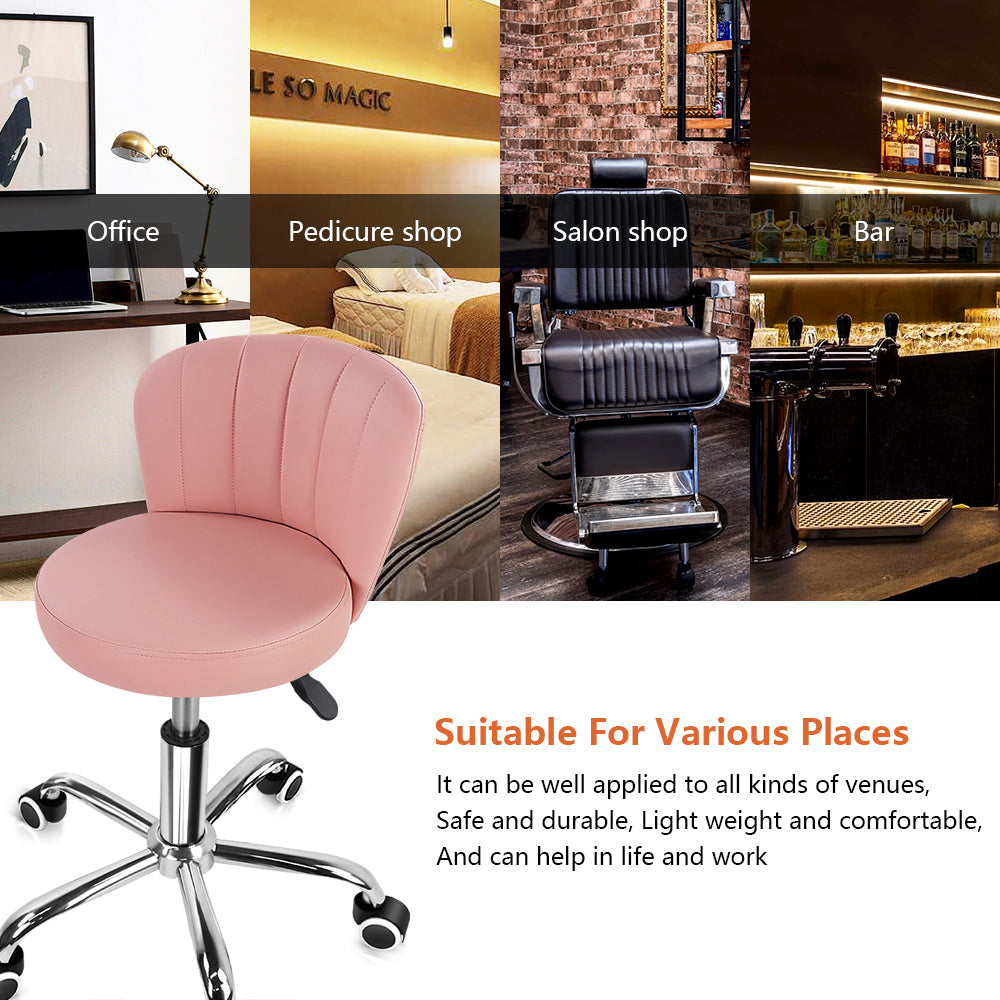 Swivel Vanity Chair With Back:The 360-degree rotating casters ensure that you can move freely in any direction when in use, and the 5 casters can move smoothly and noiselessly on any floor.